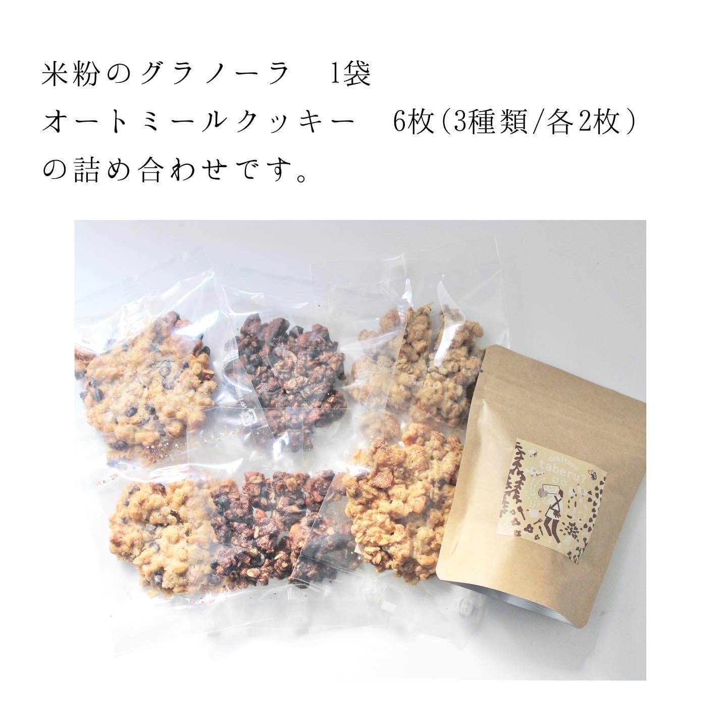 店頭で一番人気のオートミールクッキーと、米粉のグラノーラの詰め合わせセットです。